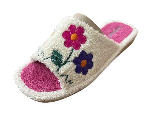 Zapatillas de mujer de rizo crudo/fuxia flores
