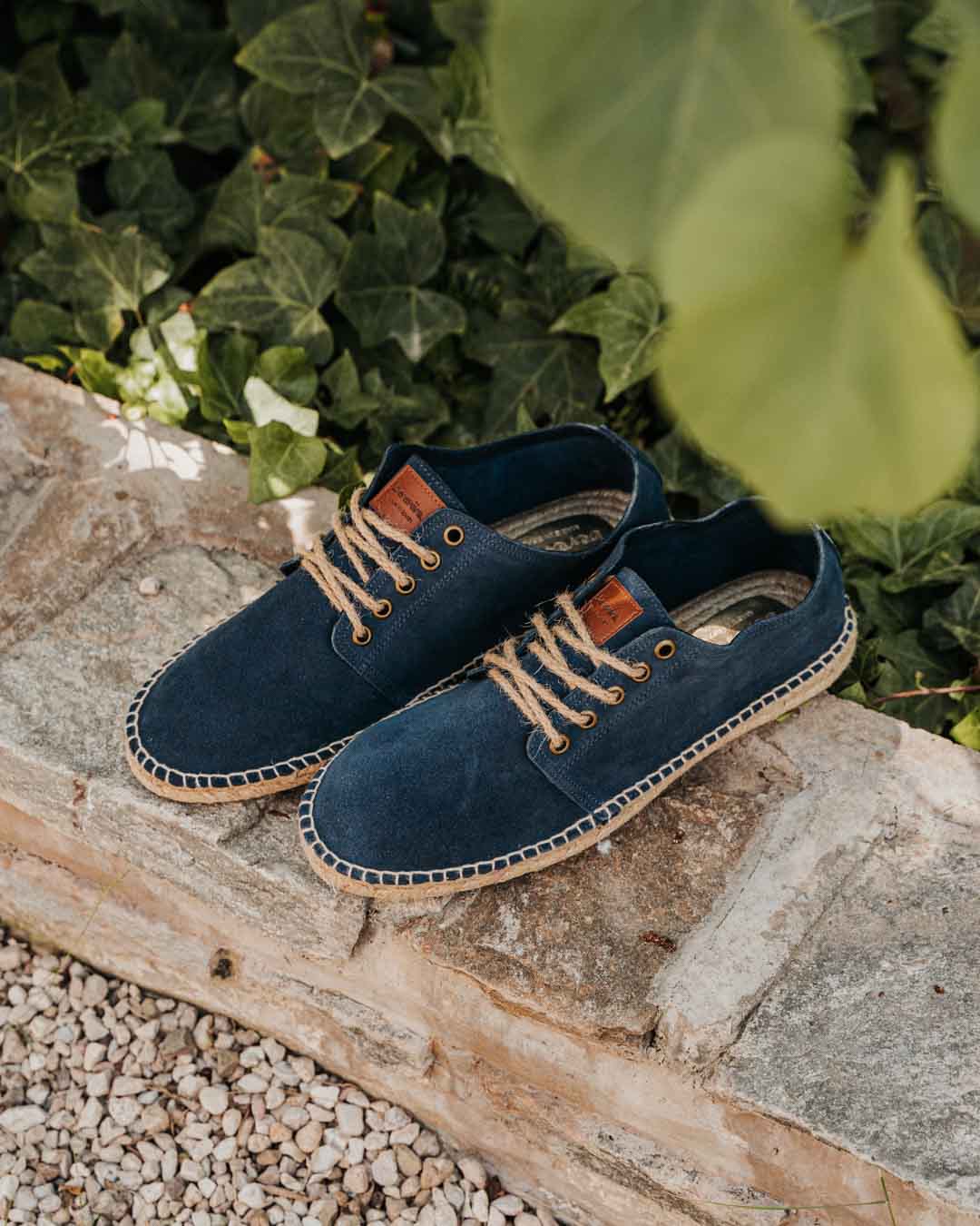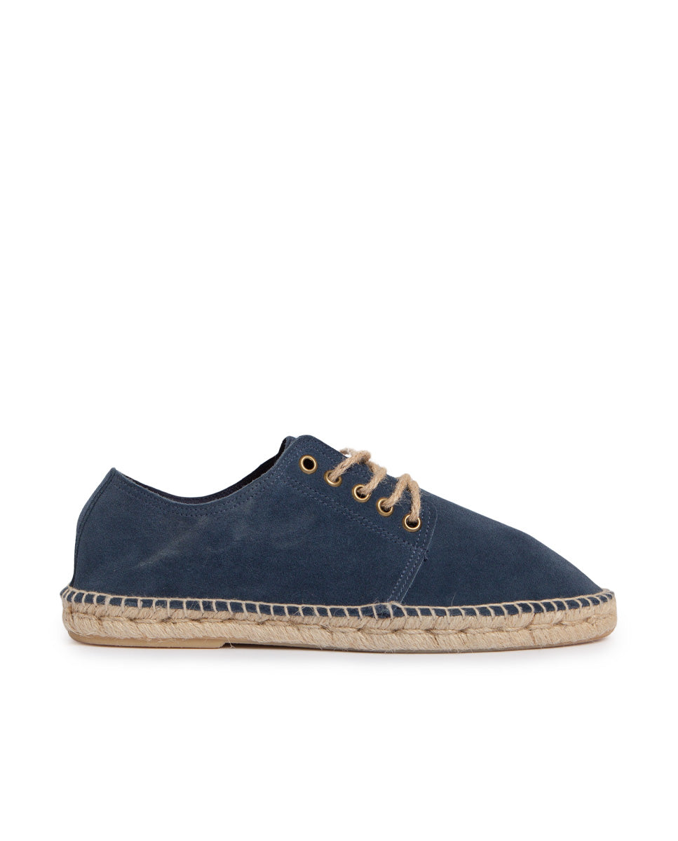 Zapato blucher estilo alpargata de yute en color marino con cordones de yute.