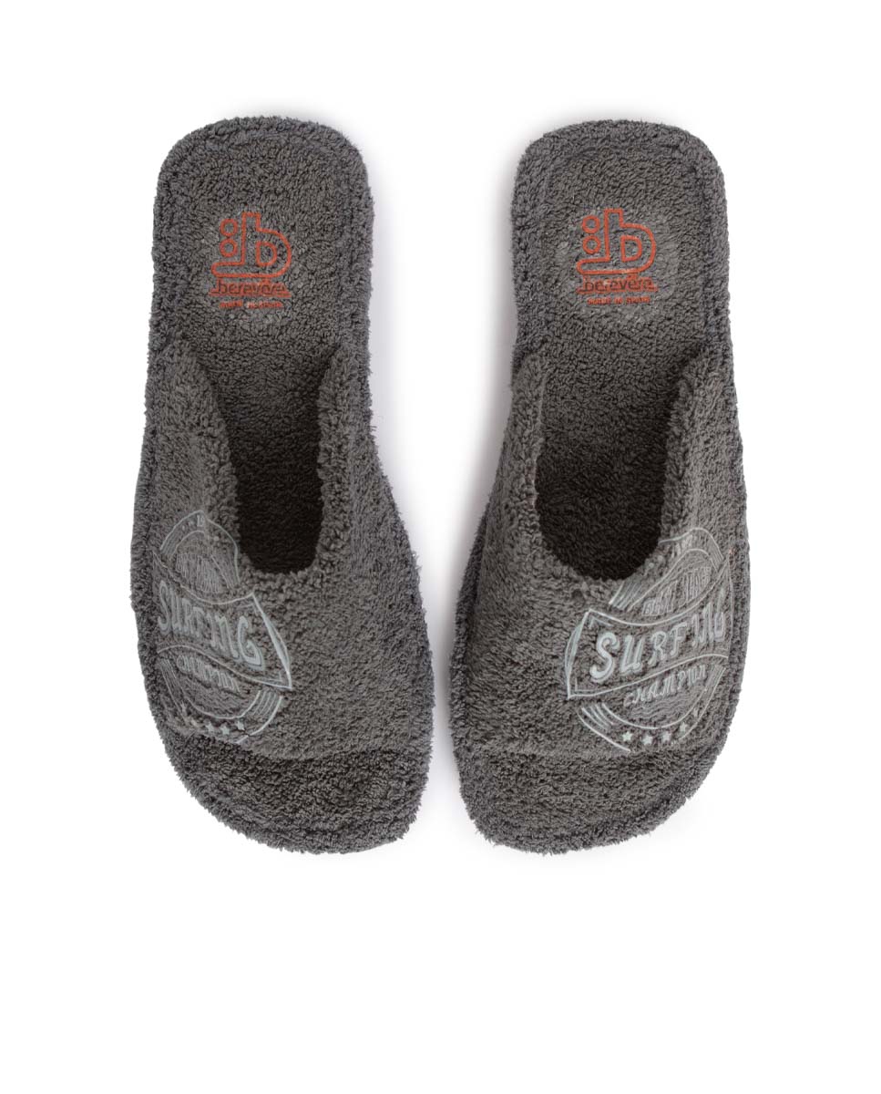 Zapatillas de casa para hombre con pala ancha en rizo color gris.